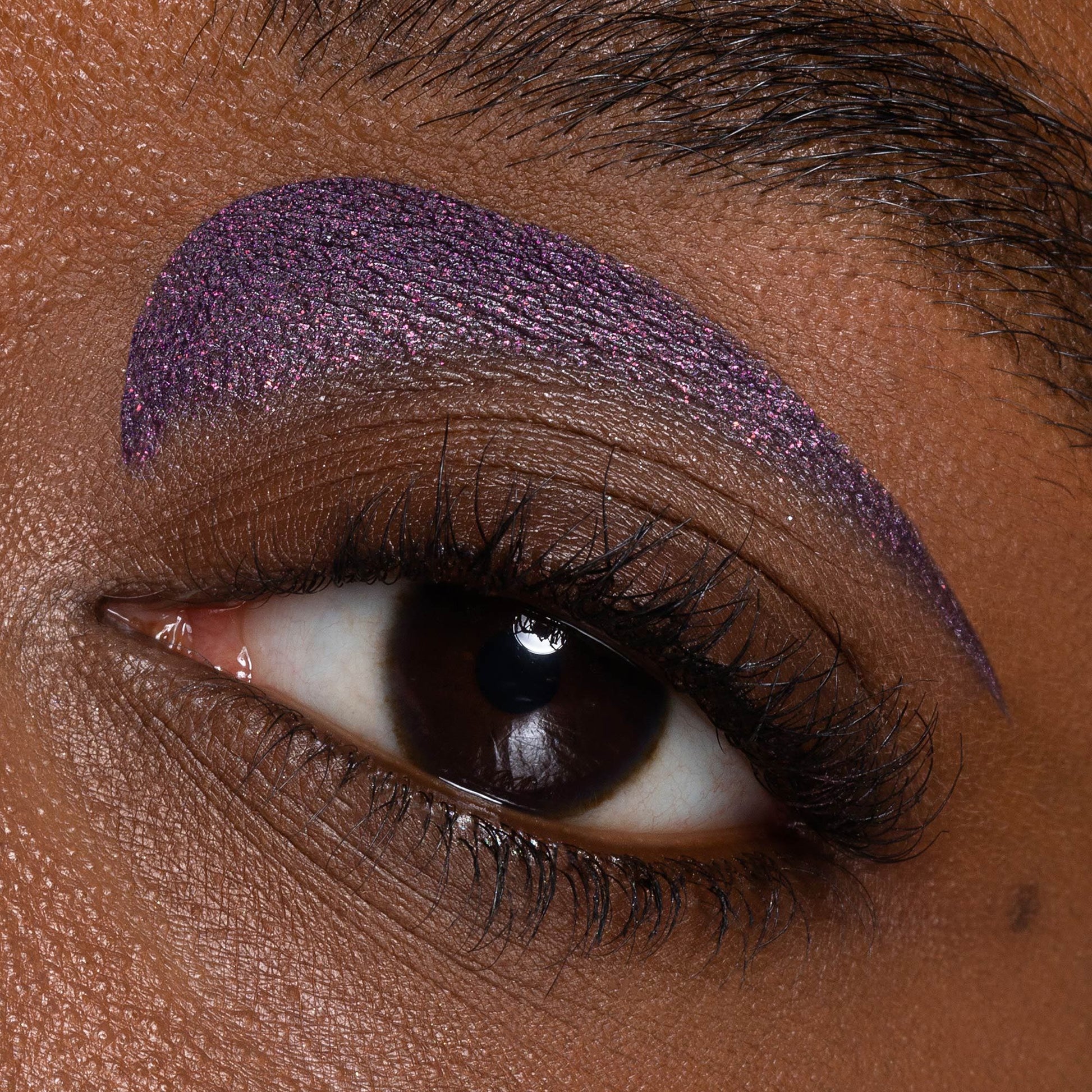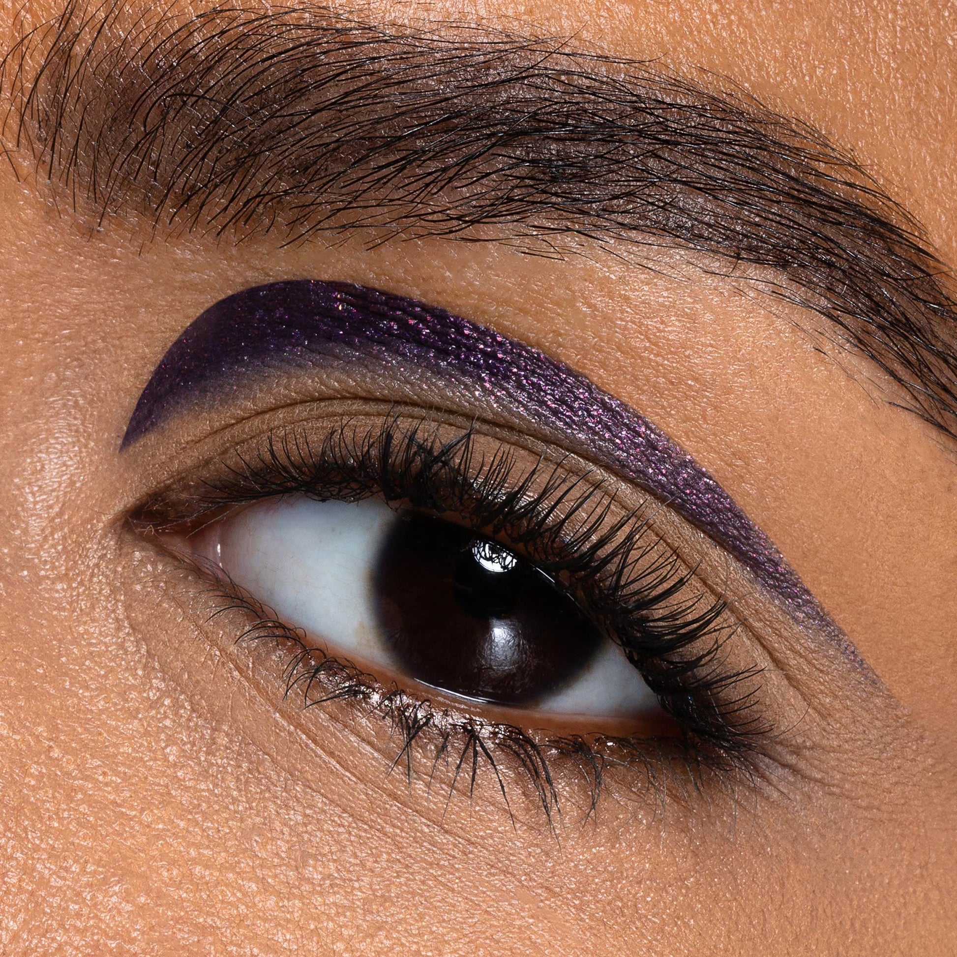 Viola indaco scuro intenso con glitter rosa/arancio. Per delineare lo sguardo con un contrasto di luci ed ombre.